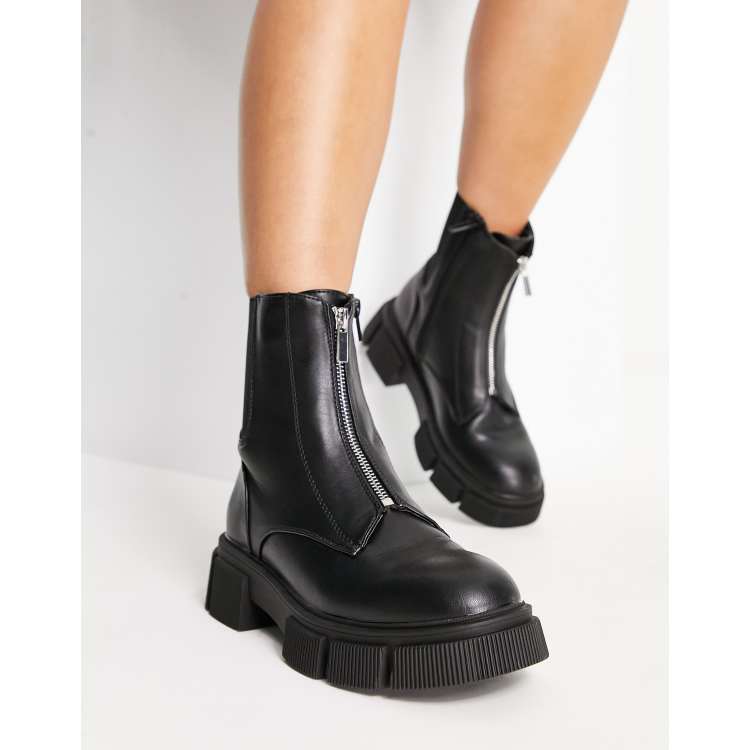 Botas Chelsea negras planas con suela gruesa y cremallera frontal Very well made.