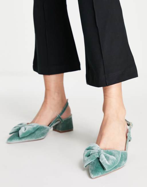 Zapatos verdes de tac n medio con tira talonera y lazo de Very well made.