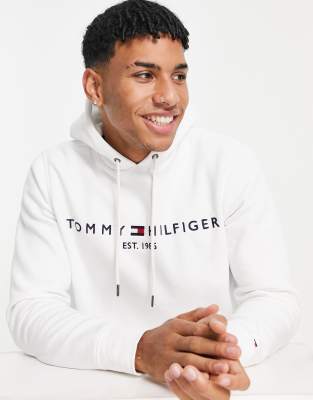 Sudadera blanca con capucha y logo cl sico de Tommy Hilfiger Very well made.