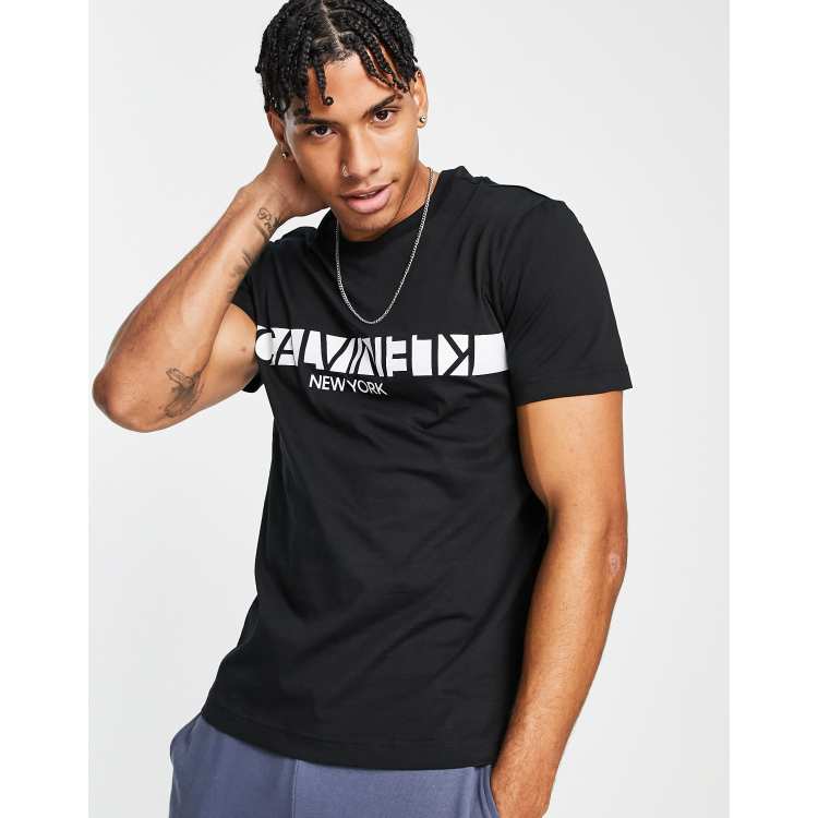 Calvin Klein reversed chest stripe logo T shirt in black Very well made.