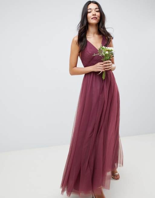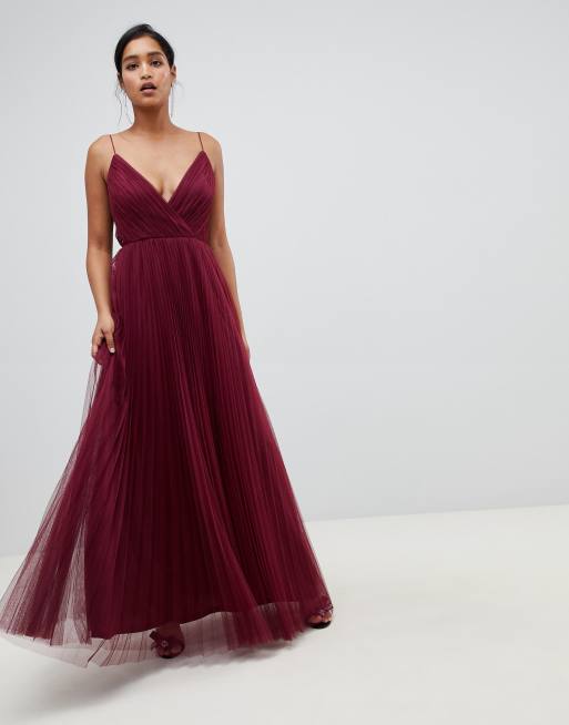 Vestido largo de tul con plisado y tirantes de ASOS DESIGN Very well made.