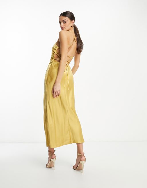 Vestido largo dorado con botones en la parte delantera y detalle de cordones en la espalda de sat n de ASOS DESIGN Very well made.