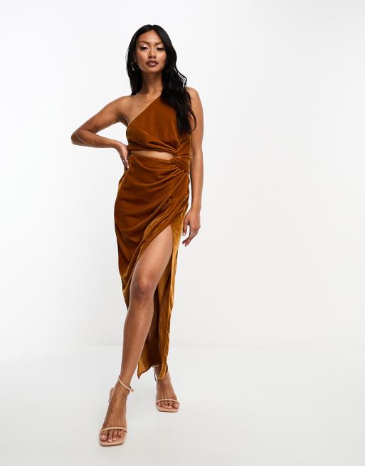 Vestido semilargo dorado con detalle anudado y abertura de terciopelo de ASOS DESIGN Very well made.