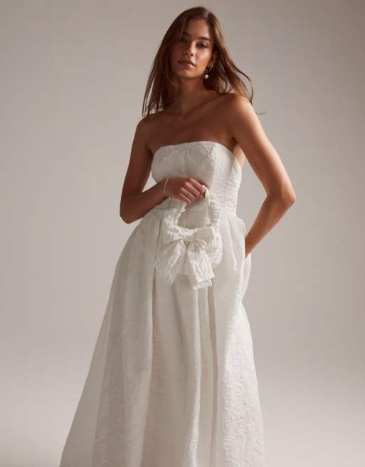 Vestido de novia largo con escote palabra de honor y dise o floral texturizado Winnona de ASOS DESIGN Very well made.