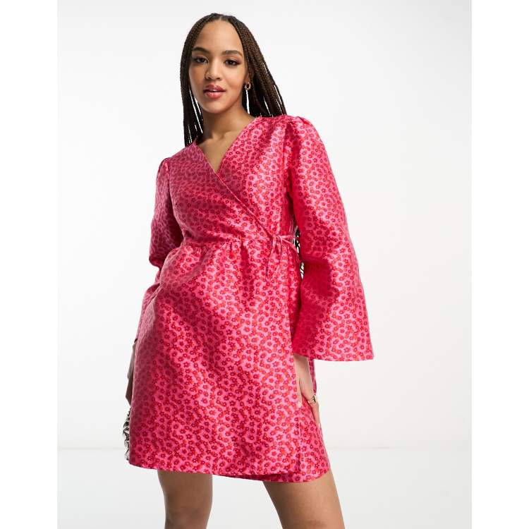 Vestido corto rosa y rojo cruzado con mangas estilo kimono premium de Pieces Very well made.