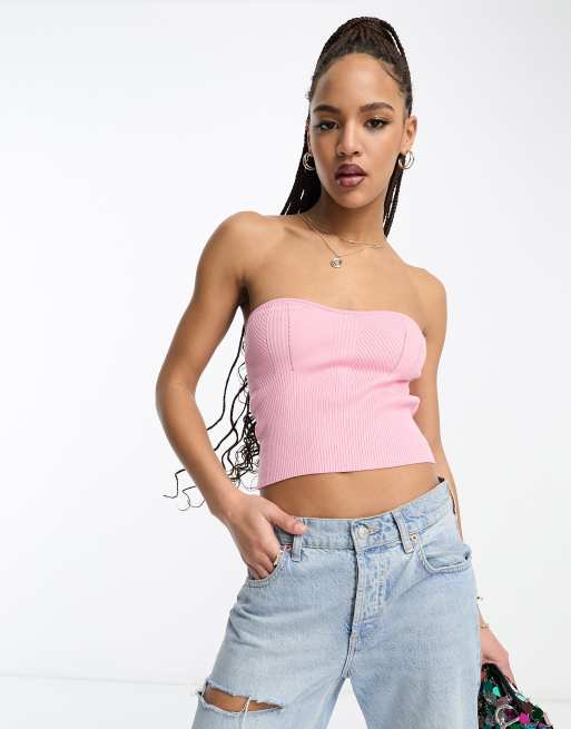 Camiseta rosa p lido con escote palabra de honor de punto Very well made.