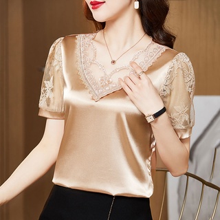 Blusas De Encaje Elegante Para Mujer Camisa De Mangas Cortas Very well made.