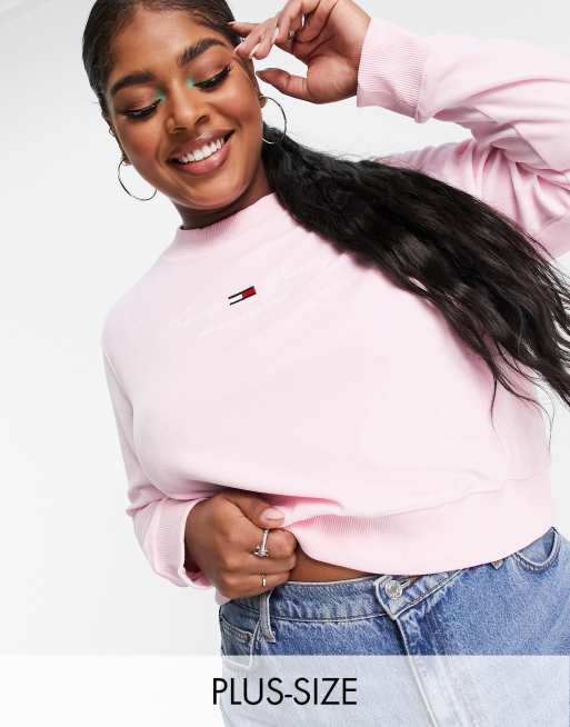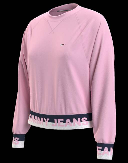 Tommy Jeans Plus Sweater met ronde hals en logo op de afwerking in roze Very well made.