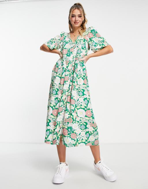 Monki Midi jurk met knopen in retro bloemenprint ASOS Very well made.