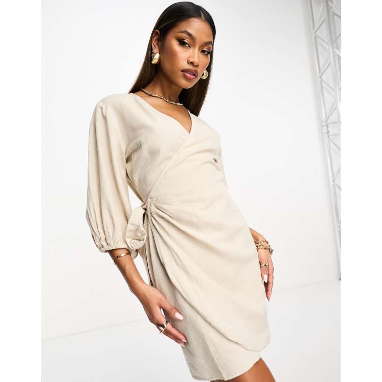 NA KD Mini jurk met overslag van linnen in beige Very well made.