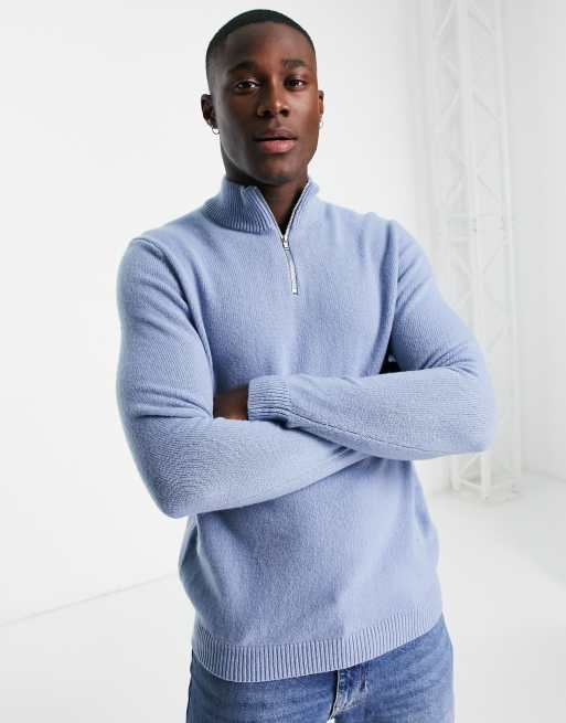 ASOS Design Trui van lamswol met halve rits in blauw Very well made.