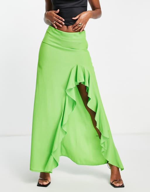 Trendyol Lange rok met ruches langs de split in limoengroen Very well made.