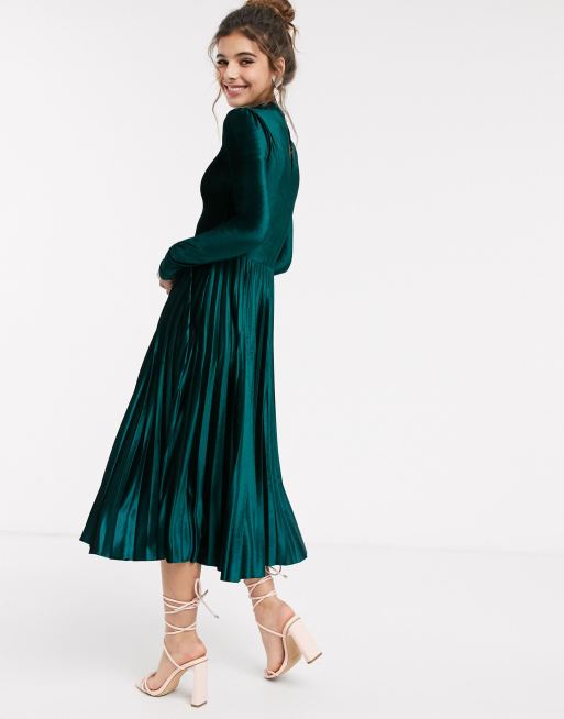 Oasis Geplooide midi jurk van fluweel in groen Very well made.