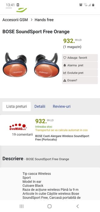 Casti wireless BOSE SoundSport Free Orange Bistrita OLX.ro Very well made.