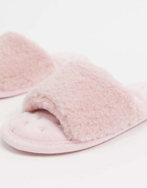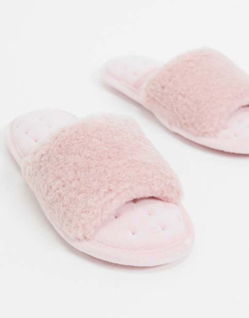 Totes Isotoner open toe mule slippers in pink ASOS Very well made.