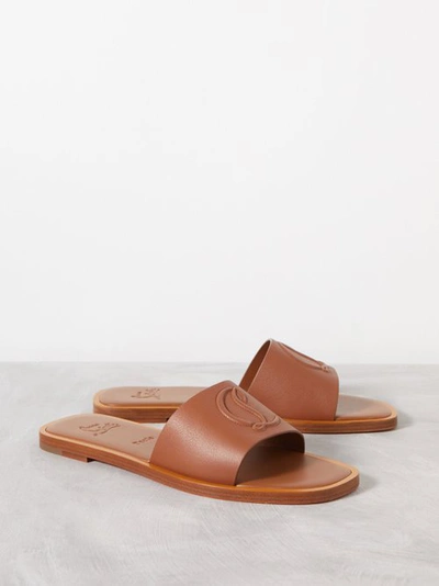 Christian Louboutin Leather Logo Red Sole Slide Sandals Neiman Very well made.