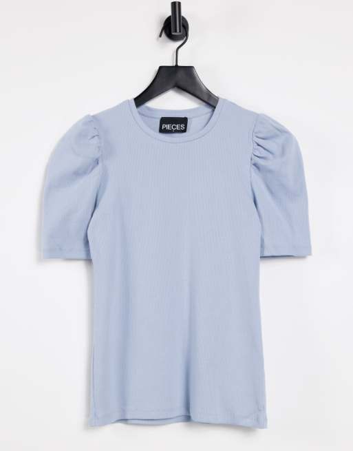 Pieces t shirt with puff sleeves in blue Very well made.