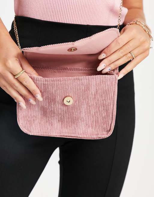 Truffle Collection cord cross bodysuit with chain strap in blush pink Very well made.