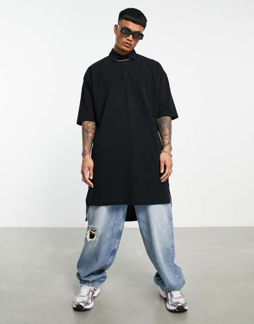 ASOS DESIGN oversized extreme longline polo in pique in black ASOS Very well made.