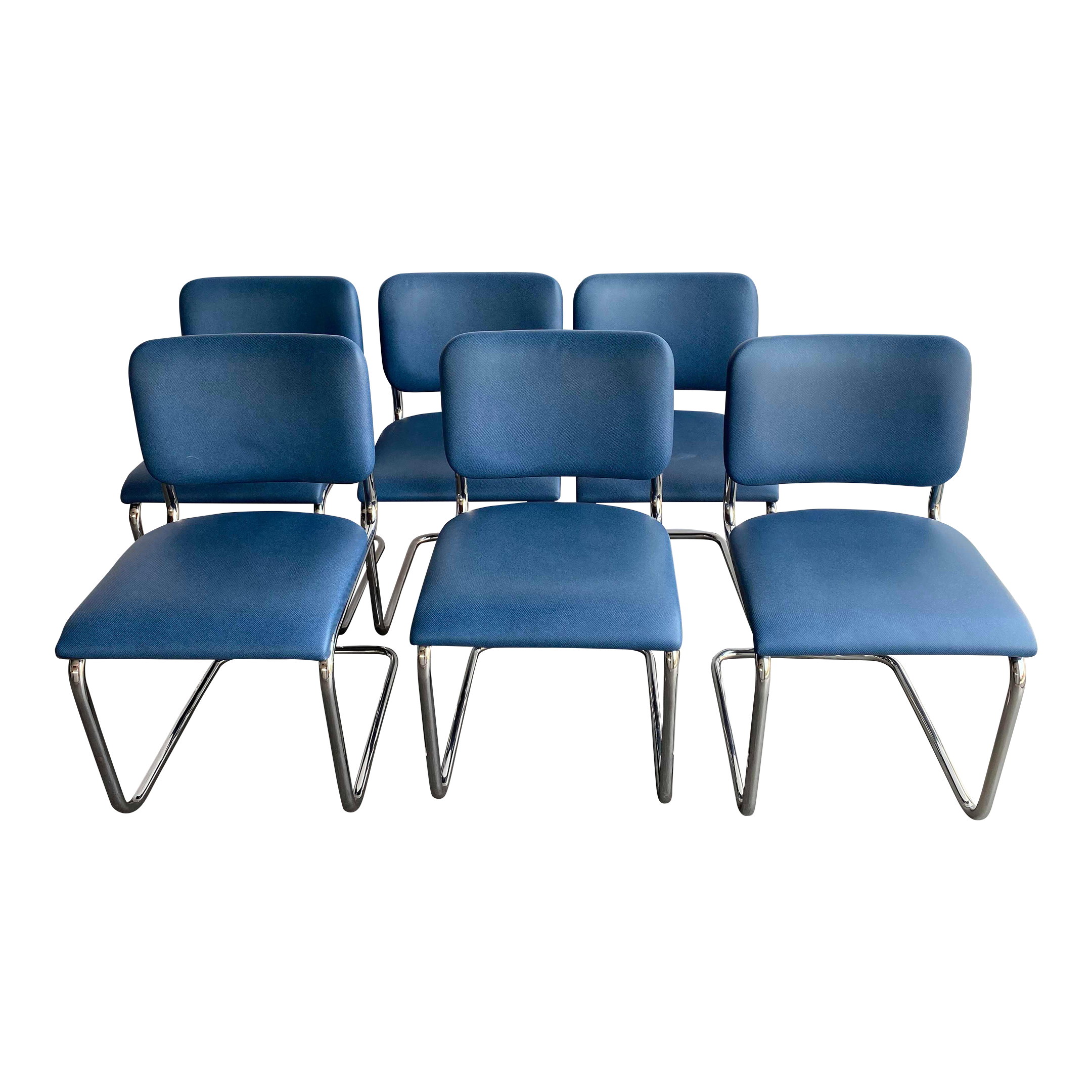 Vintage Blue Vinyl Tubular Chrome Frame Dining Chairs Set of Six Very well made.
