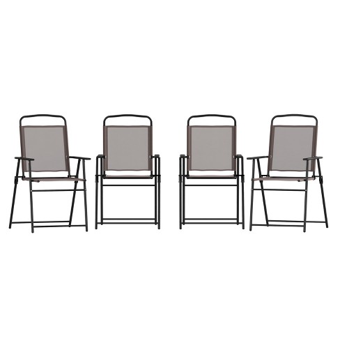 Emma and Oliver Set of 4 Brown Textilene Folding Sling Style Patio Chairs with Armrests Very well made.