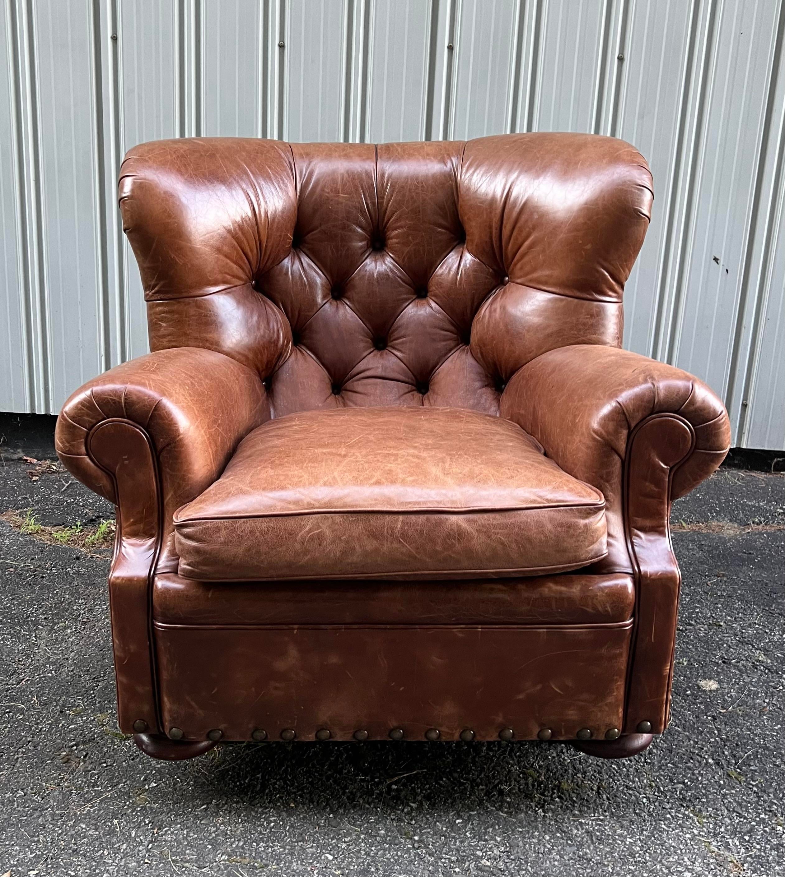 Ralph Lauren Writer s Aged Brown Leather Armchair and Footstool Very well made.