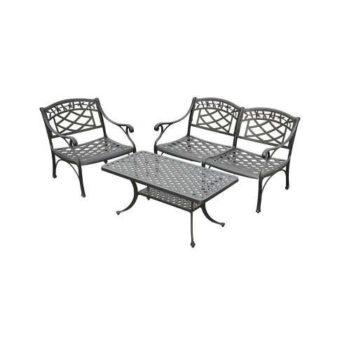 Crosley Furniture Sedona 4 Piece Solid Cast Aluminum Outdoor Conversation Set with Table Loveseat and 2 Club Chairs Black Very well made.