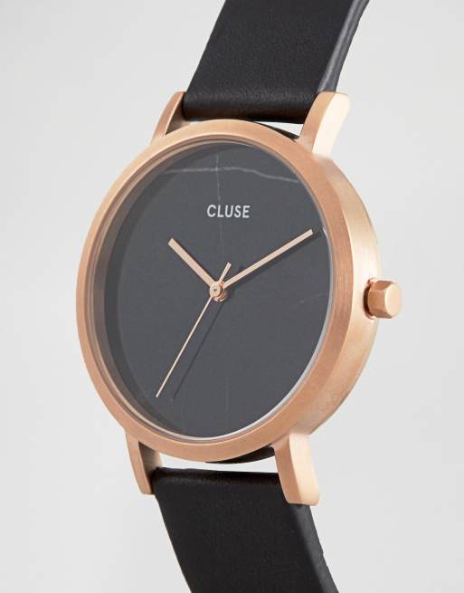 CLUSE La Roche Montre bracelet en cuir Marbre noir et or rose Very well made.