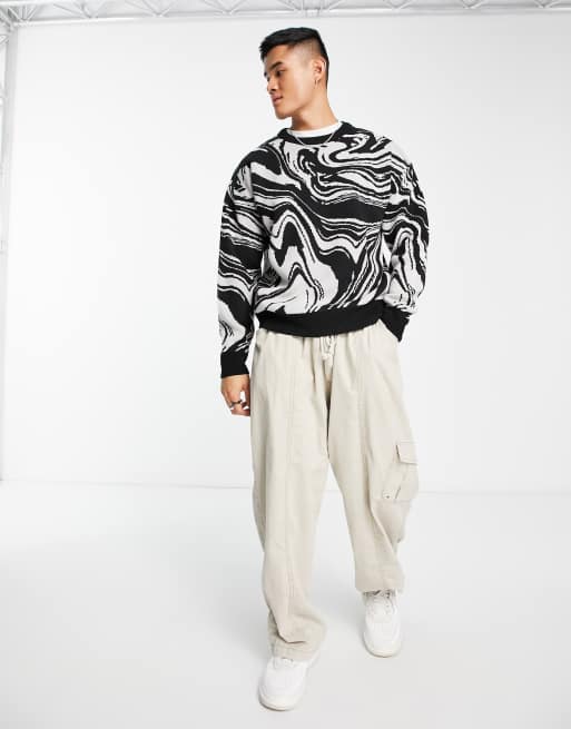 Jack Jones oversized marble crew neck sweater in black ASOS Very well made.