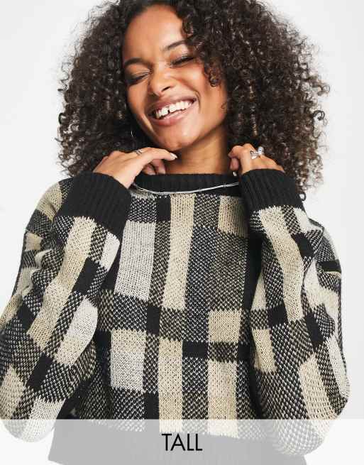 Only Tall Pull raccourci carreaux Noir et cr me ASOS Very well made.