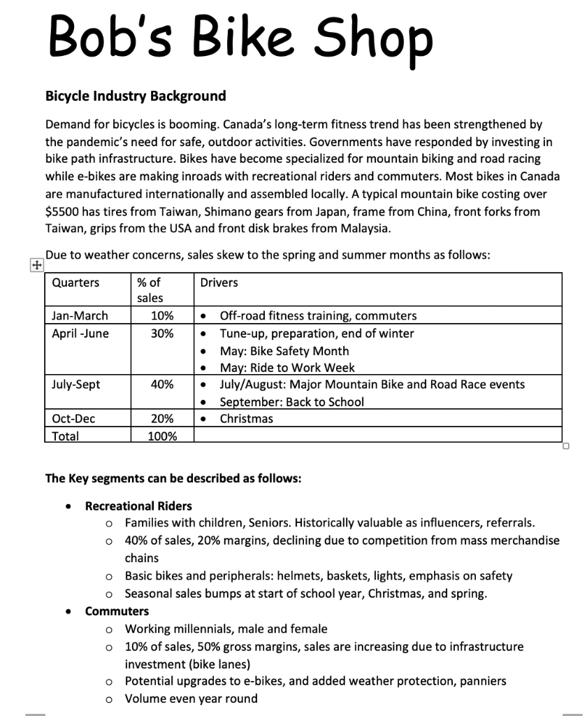 Bob s Bike Shop Bicycle Industry Background Demand Chegg Very well made.