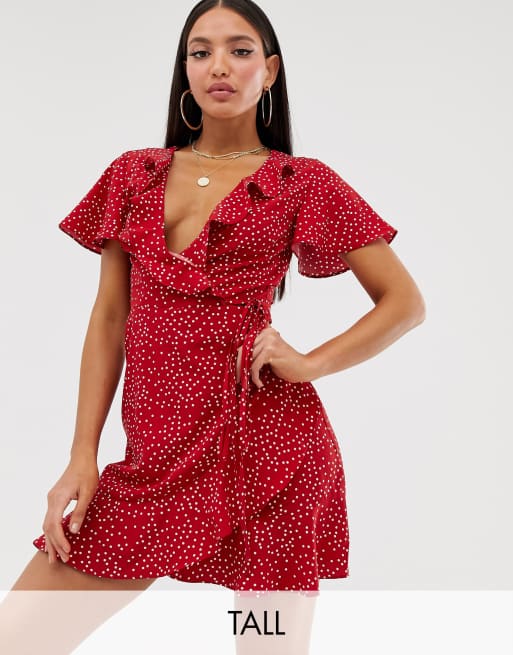 Missguided Tall exclusive wrap tea dress in red polka Very well made.