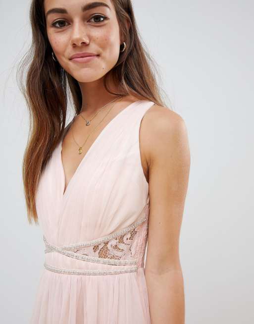 Little Mistress Petite Robe longue avec ornements la taille et dentelle au dos Nude Very well made.