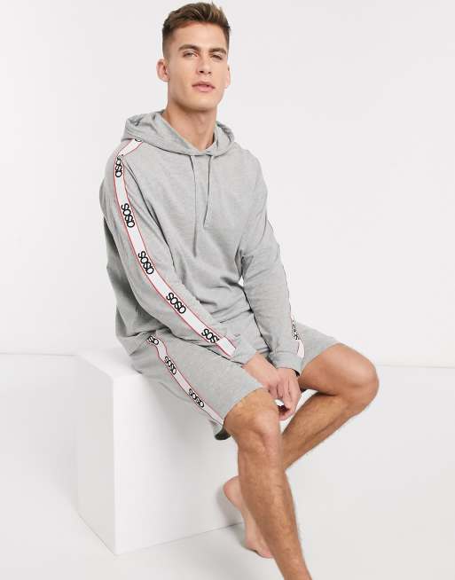 ASOS DESIGN pyjama short and oversized hoodie set in gray marl with branded taping Very well made.