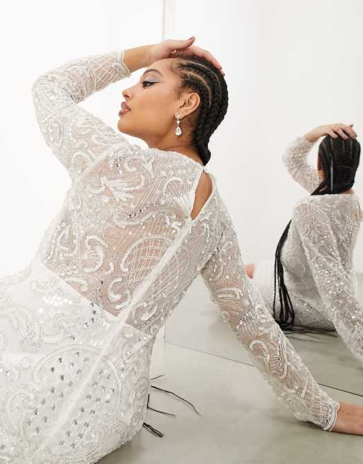 ASOS EDITION Curve Robe courte orn e de sequins et bijoux avec ourlet festonn Ivoire Very well made.
