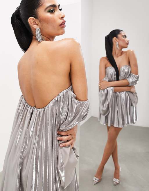 ASOS EDITION Robe bandeau courte coupe ultra fluide Argent Very well made.