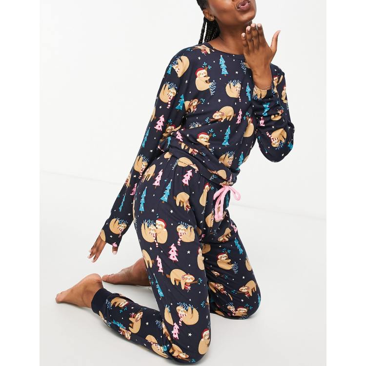 Chelsea Peers christmas sloth long pajamas in navy ASOS Very well made.