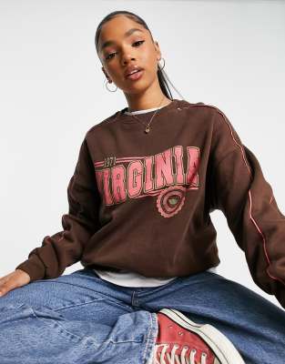 Pull Bear oversized varsity sweatshirt in navy Very well made.