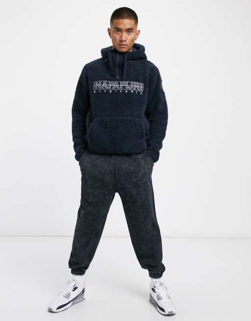 Napapijri TEIDE 2 sherpa fleece hoodie in blue marine Very well made.