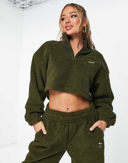 PUMA Classics Cozy Club borg half zip sweatshirt in deep olive Exclusive to ASOS Very well made.
