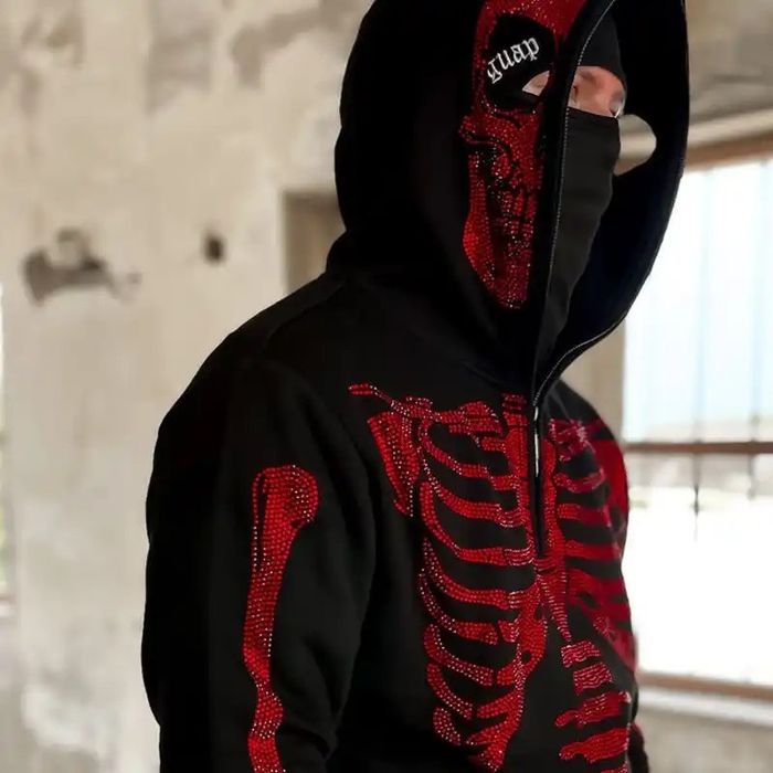 Y2K Gothic Rhinestone Skeleton Skeleton Zip Up Hoodie For Women Very well made.
