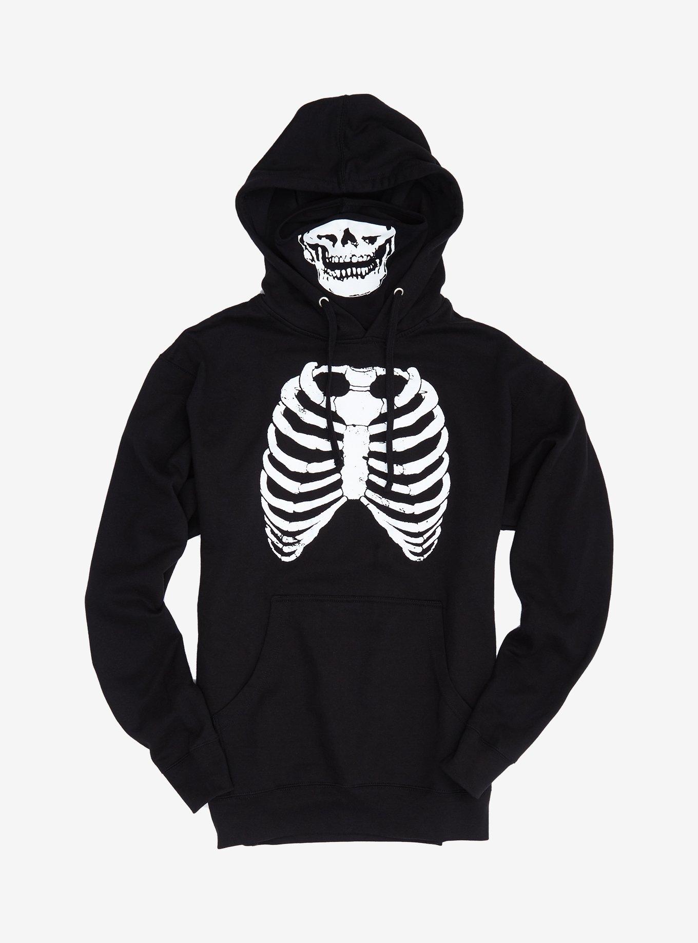 Mens Black Red Full Face Skeleton Skull Hoodie Very well made.
