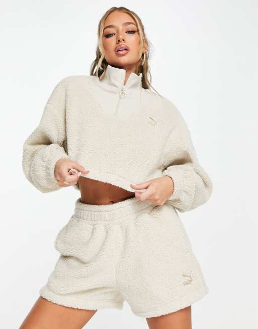 PUMA Classics Cozy Club borg half zip sweatshirt in oatmeal Exclusive to ASOS Very well made.