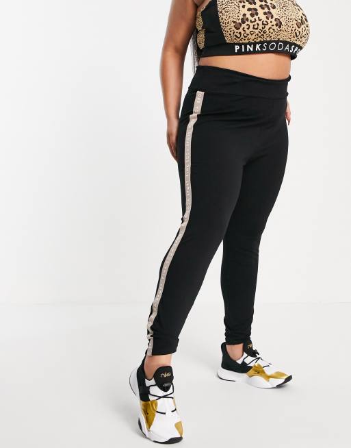 Pink Soda Sport Plus leggings with taping in black Very well made.