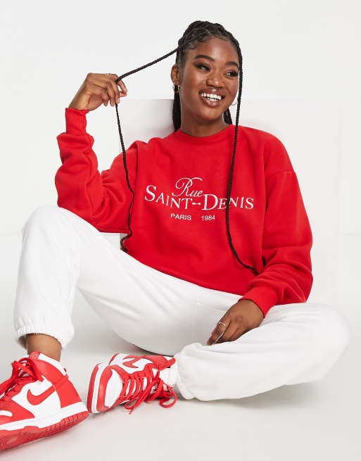Stradivarius oversized embroidered sweatshirt in red Very well made.