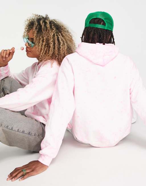 COLLUSION Unisex neon pink spray wash hoodie with spaced logo Very well made.