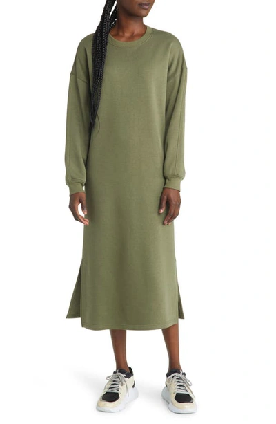 Treasure Bond Long Sleeve Midi Sweatshirt Dress In Green Sorrel Very well made.