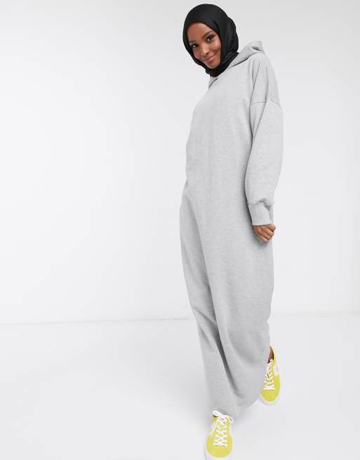 ASOS DESIGN hoodie maxi sweat dress with broken promises back print in gray Very well made.