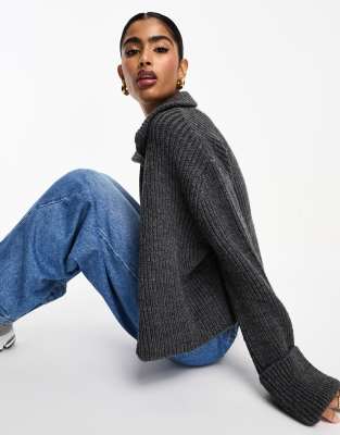 Topshop premium knit wide rib crew neck cardigan in gray ShopStyle Very well made.