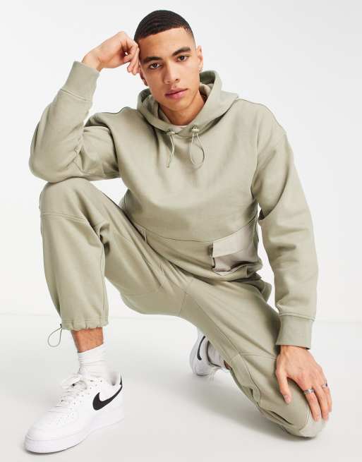 Topman oversized nylon pocket cargo hoodie in green Very well made.